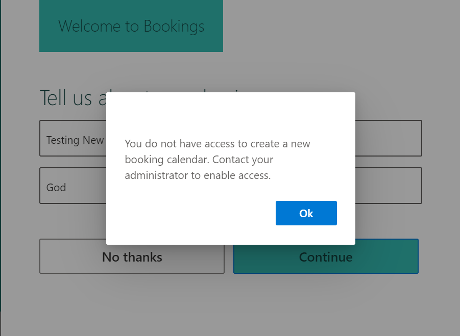“You do not have access to create a new Booking Calendar. Contact your administrator to enable access”
