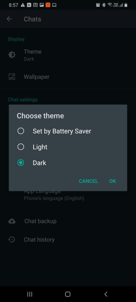 Tap on the theme option then choose the option of your choice Like “ Set by Battery Saver”, “Light “ and “DARK”.
